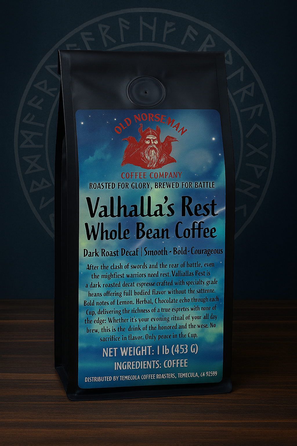 After the clash of swords and the roar of battle, even the mightiest warriors need rest. Valhalla’s Rest is a dark-roasted decaf espresso crafted with specialty-grade beans offering full-bodied flavor without the caffeine.
